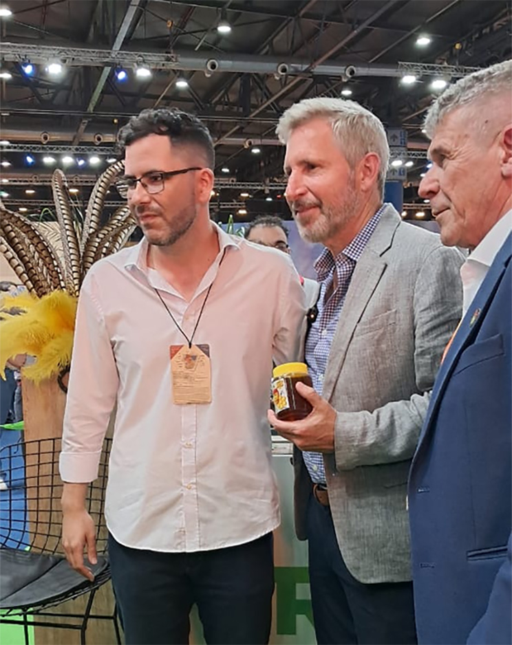 Durante la feria, el stand de Colonia Elía recibió la visita de autoridades provinciales, entre ellas el gobernador Rogelio Frigerio y el secretario de Turismo, Jorge Satto. Ambos fueron agasajados con productos elaborados por emprendedores locales, gesto que simbolizó la creatividad y el esfuerzo de quienes día a día contribuyen al desarrollo económico y cultural de la localidad.
